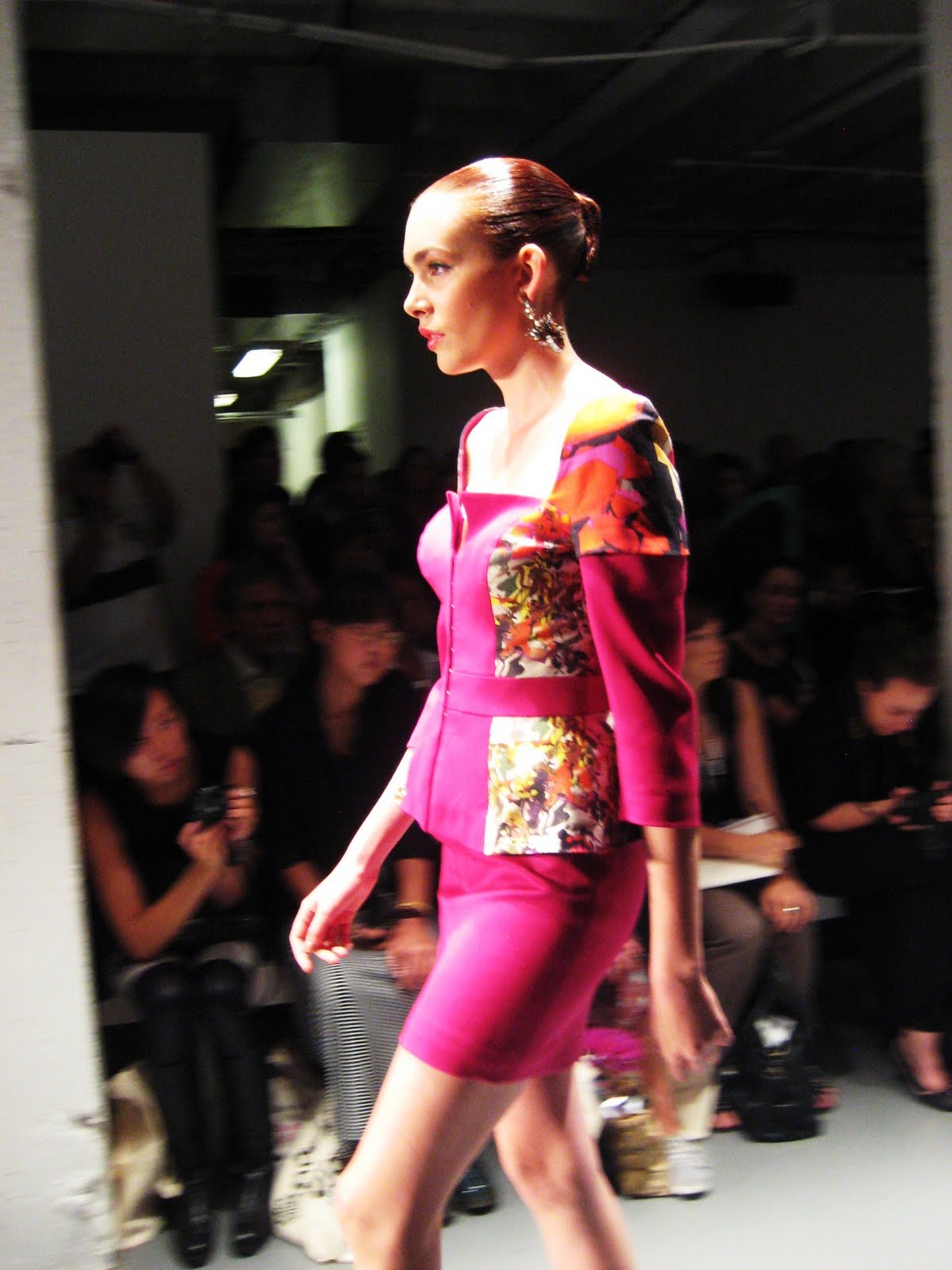I was drawn immediately to the glittering black dress with shoulder detailing and the printed dress next to it. I thought they really showed off Jeong's ability to produce a contrast of styles but with her personal touches running through the designs.